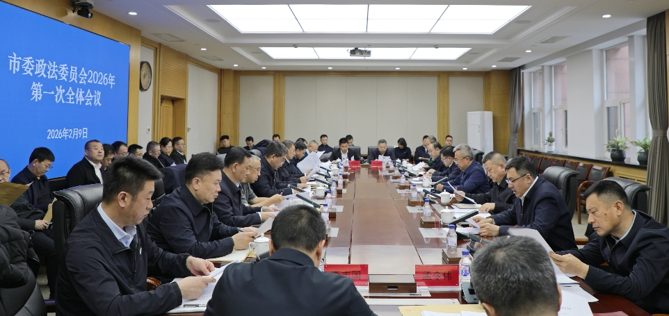 2月9日,市委政法委员会召开2026年第一次全体会议,传达学习中央和省委政法工作会议精神,听取市直政法单位工作汇报,研究部署近期重点工作。市委常委、市委政法委书记周贺主持会议并讲话,市法院院长任贵利、市检察院检察长黄国华出席会议。