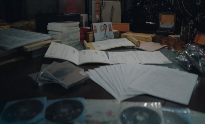 ▲办案民警查获的相关书证、物证资料