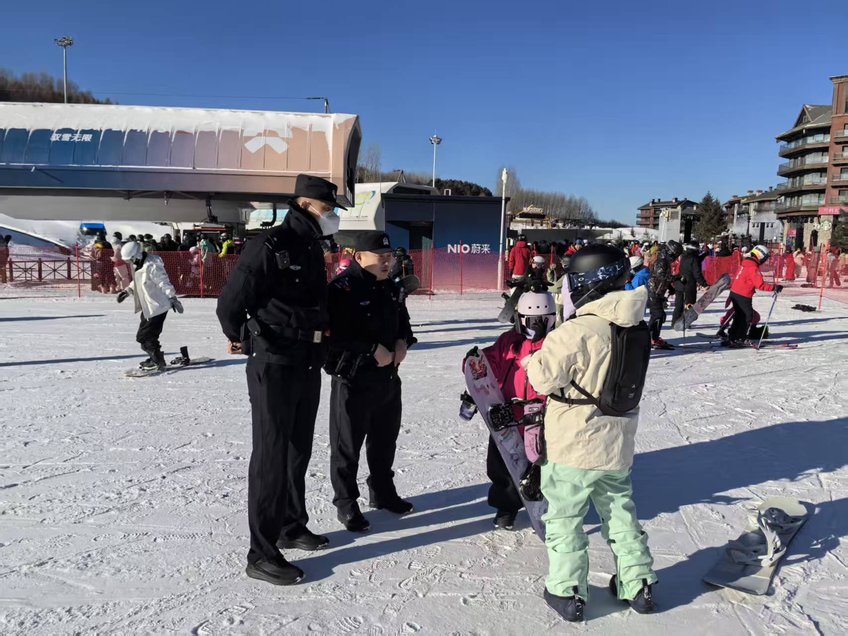 二是联合执法亮剑,乱象整治不松懈。服务站同步组建联合执法巡查小组,构建“服务化解+执法兜底”闭环机制。公安分局在度假区停车场设立临时岗点,加大巡逻频次,严打黄牛拉客、拦截骚扰游客等行为,累计找回游客遗失雪板、雪镜等物品6件,未发生恶意索要好处费等违规现象;城管执法大队、市场监管分局开展联动巡查,重点整治占道经营、低俗小广告、违规灯箱等乱象,规范商户经营3次;联合商务局解读景区物价政策,有效化解消费不满纠纷,度假区及周边市容与经营秩序持续向好。