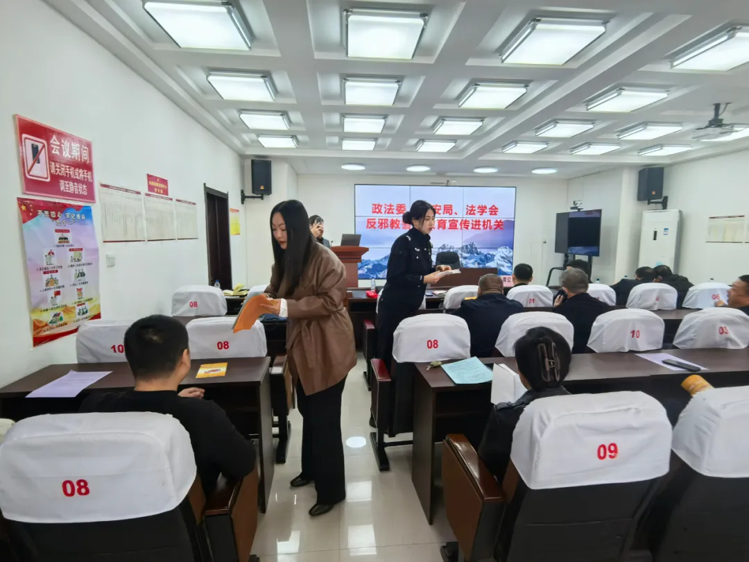 双辽市反邪教警示教育宣讲员详细介绍了邪教的种类、特征、本质及社会危害,对党员干部绝不允许参加宗教活动及邪教活动的相关法律、法规和如何提升自身防邪、反邪、拒邪能力进行了讲解。宣讲后,现场播放了由双辽本地真实邪教案例改编拍摄的反邪教微电影《吞噬的花季》。活动期间共发放反邪教宣传单80余张,反邪教宣传手册60余本。