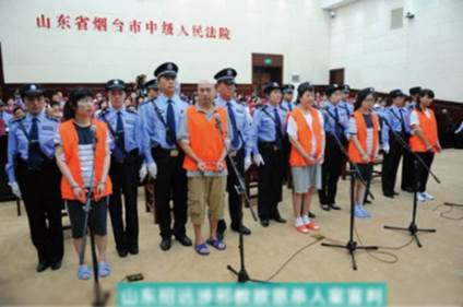 2014年10月11日上午9时,案件在山东省烟台市中级人民法院第一审判庭公开宣判。张帆、张立冬等2人被判处死刑,吕迎春被判处无期徒刑,张航被判处有期徒刑10年,张巧联被判处有期徒刑7年。