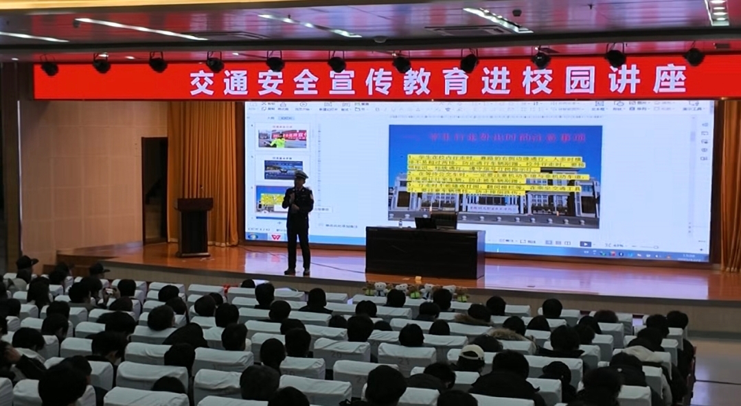 课堂上,交管大队民警结合院校周边交通特点与学生出行实际,用通俗易懂的语言讲解交通法规,通过典型事故案例直观剖析闯红灯、骑行未戴安全头盔、横穿马路等陋习的危害。针对学生高频出行场景,重点讲解步行、骑行、乘车等安全要点,细致科普“一盔一带”的防护作用、车辆盲区规避技巧及紧急求助常识,让安全知识入脑入心。同时,民警还创新宣传形式,现场打起快板唱响安全口号,欢快的节奏搭配朗朗上口的话语,瞬间点燃现场氛围,让学生在轻松愉悦的氛围中牢记交通安全要点。