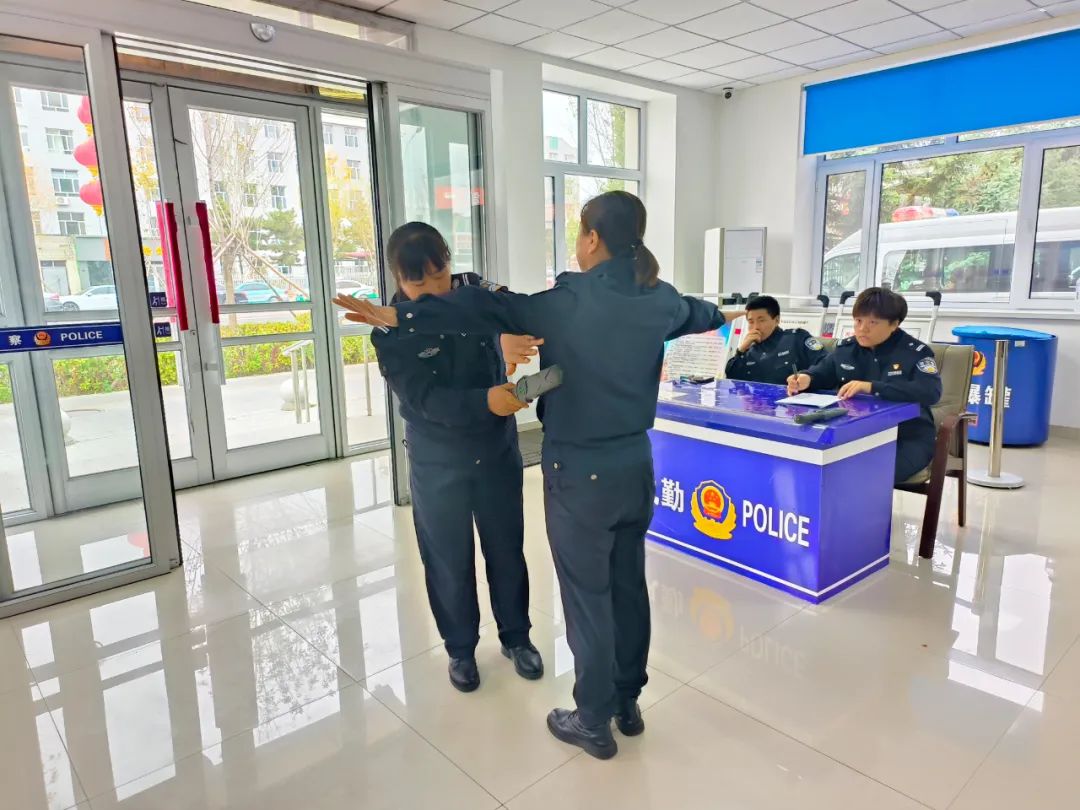 在安检实操环节中,白城中院安检人员郭天羽对X光机图像识别、人身安全检查流程、安检礼仪规范、突发情况应急处置、防暴警用器材使用等进行了详细讲解和示范,并现场指导参训人员分组进行模拟人身安全检查,就实操中出现的问题进行纠正和强化训练。