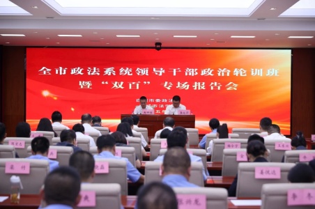 8月15日,全市政法系统领导干部政治轮训班暨“双百”专场报告会圆满完成第三期理论课程,并举办结业仪式。