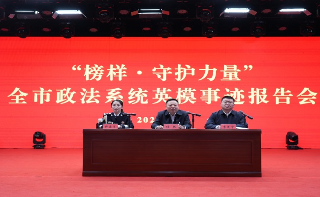 为进一步弘扬政法系统英模崇高品质和奉献精神,发挥先进典型示范引领作用,营造学习英模、崇尚英模、争当英模的浓厚氛围,12月24日,由市委政法委主办的“榜样·守护力量”暨全市政法系统英模事迹报告会在白城市公安局举行。副市长、公安局长任聪出席报告会活动。