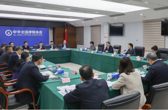 1月14日,最高人民检察院党组书记、检察长应勇带队赴全国律协走访交流、听取意见。司法部党组书记、部长贺荣主持座谈会。