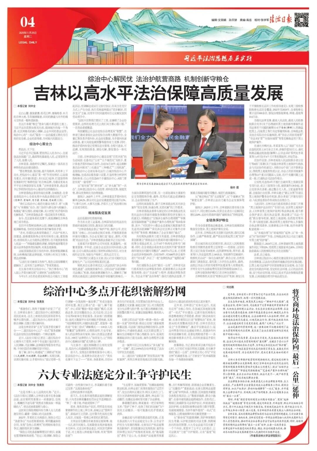 从“被动响应”到“主动服务”,从“个案解决”到“制度完善”,吉林省以法治力量为企业发展保驾护航。