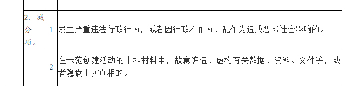(三)摘牌退出制度。示范地区有下列情形之一的,中央依法治国办应当撤销其示范命名:1.发生严重违法行政行为,或者因行政不作为、乱作为造成恶劣社会影响的;2.通过提供虚假材料、隐瞒事实真相或者其他不正当手段获取示范命名的;3.在回访抽查中证实已经达不到示范指标体系中的条件和要求的;4.其他应当撤销示范命名的情形。