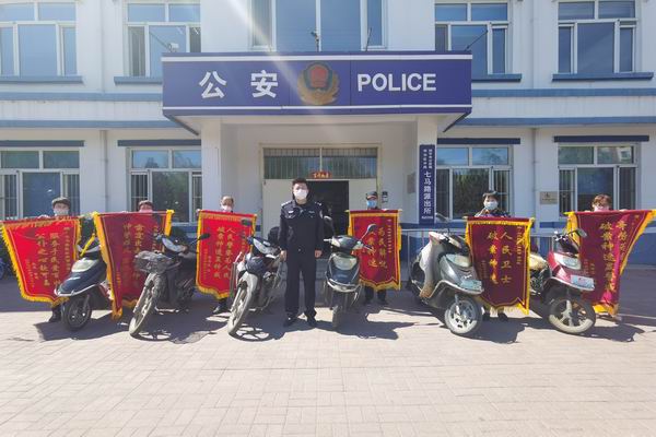 七马路派出所破获“04.22”系列盗窃摩托车、电动车盗窃案后,查获犯罪嫌疑人刘某、王某没有销赃的摩托车2辆、电动车5辆,分别与6名居住在铁东区、铁西区的被害人取得联系,并建立微信群进行详细核对,在核对准确无误后,6名被害人约定于5月13日共同到七马路派出所领取丢失车辆。