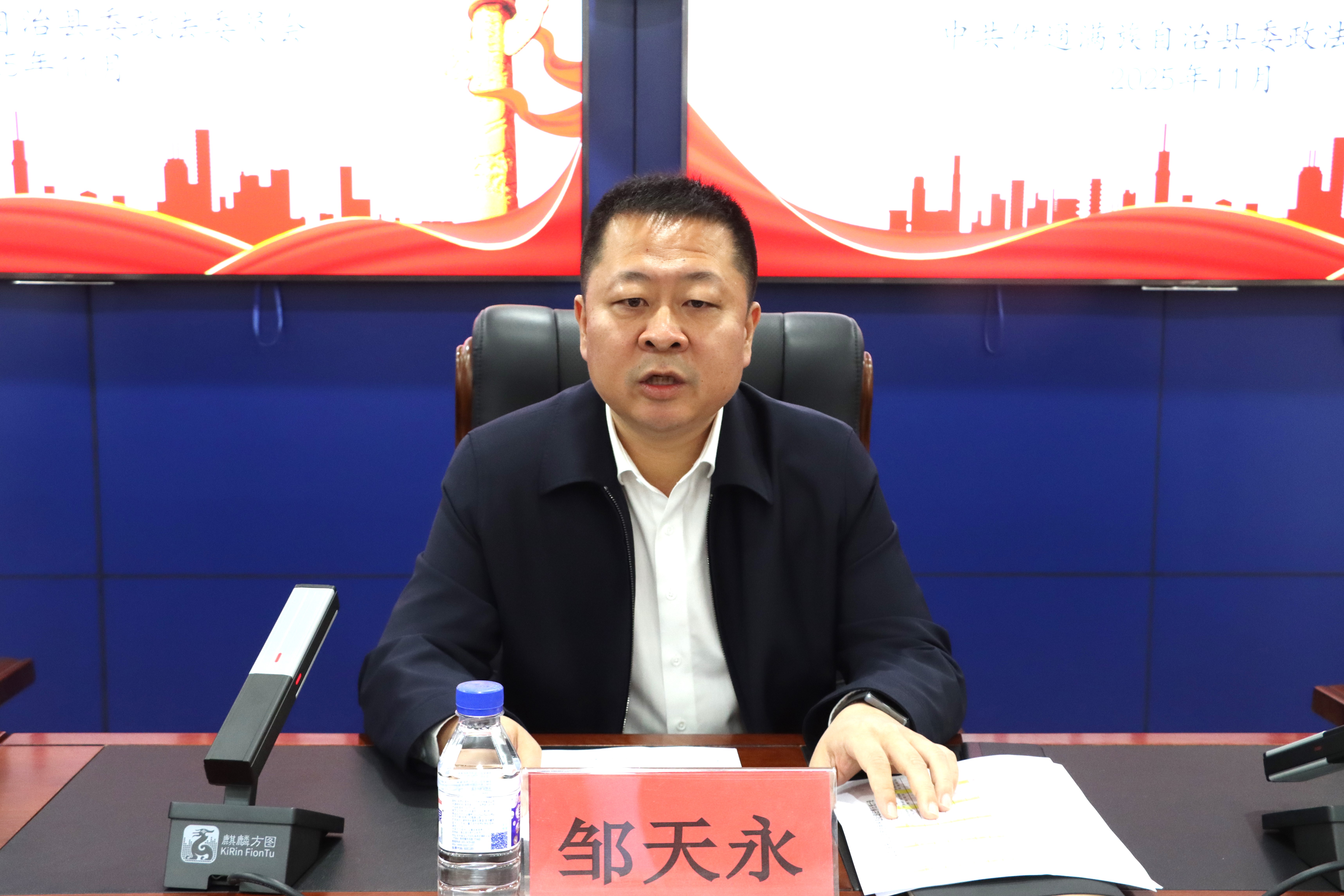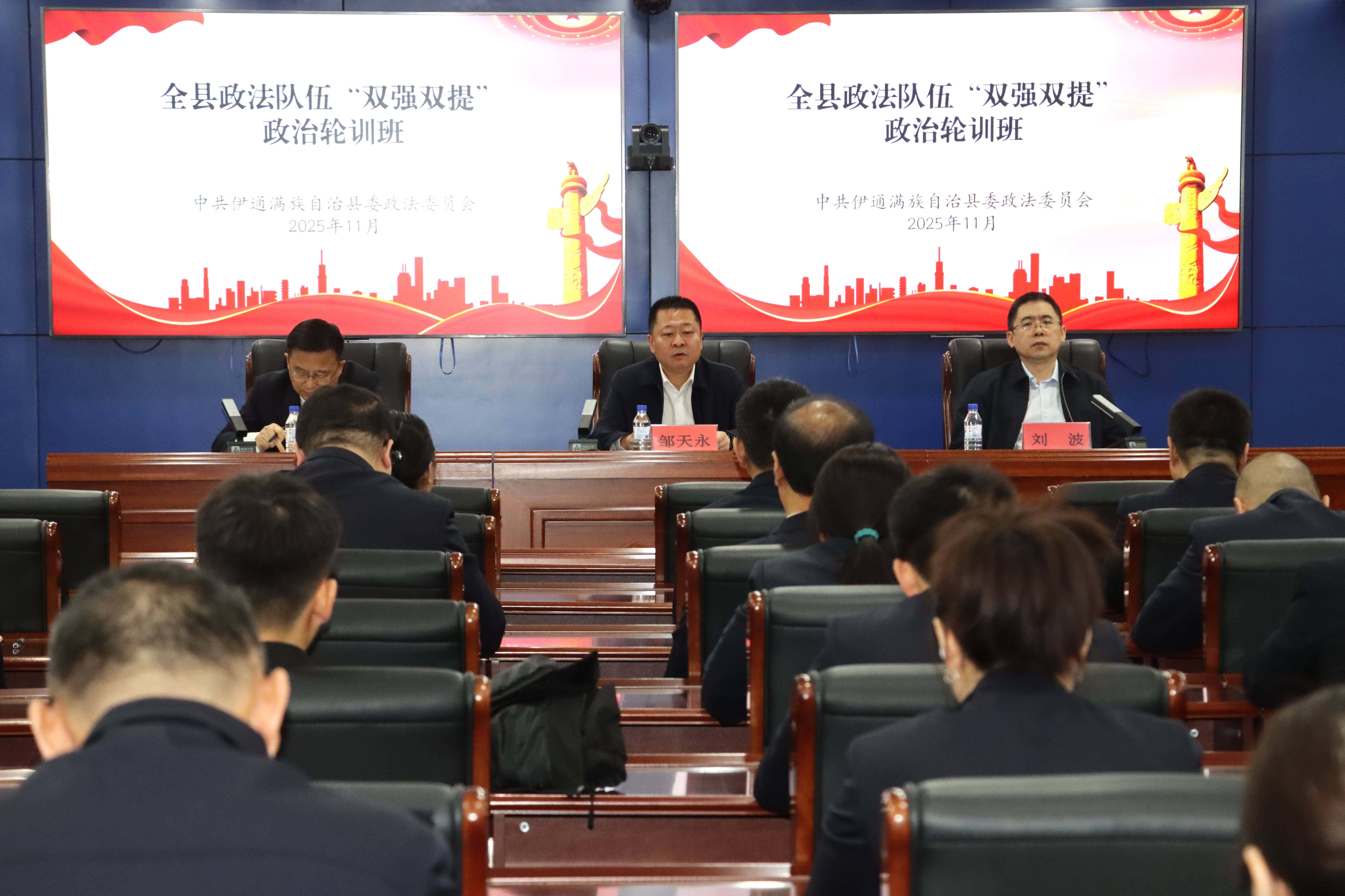 11月7日,全县政法队伍强党性、强作风、提素质、提效能“双强双提”政治轮训班在县公安局以视频形式开班。县委常委、政法委书记邹天永出席开班仪式并讲话。要深入学习贯彻中央八项规定精神,全面落实全市“强作风、提能力、固成果、促发展”专项行动部署要求,进一步坚定政治方向,夯实理论基础,激发强大合力,以过硬政治素养扛起新时代政法使命。